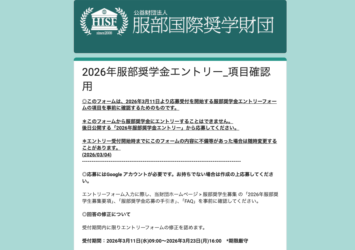 - 服部奨学金