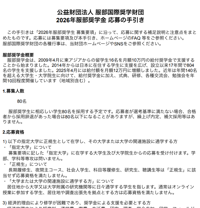 2026年服部奨学金「応募の手引き」を公開しました